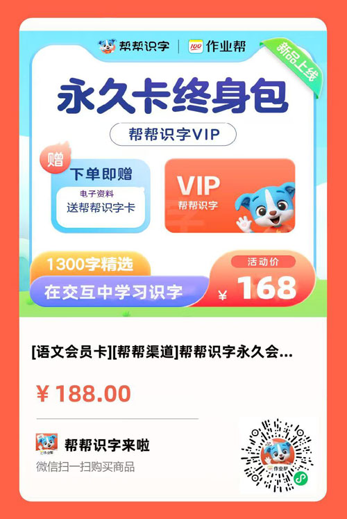 👉 扫下方优惠海报了解:帮帮识字永久会员学习卡