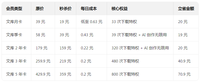 百度文库会员限时优惠合集!最低0.2元/天,下载+AI 创作权益拉满